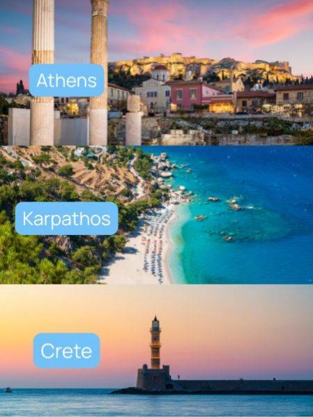 Discover Athens, Karpathos, and Crete — a journey that blends history, culture, and natural beauty. From the ancient wonders of the Greek capital to the untouched charm of Karpathos and the vibrant landscapes of Crete, experience the very essence of Greece in one unforgettable trip.